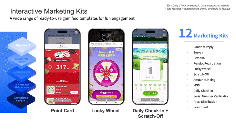 นอกจากข้างต้นที่เป็นการใช้งาน LINE OMO แบบเบสิคแล้ว เราสามารถอัพเกรดการใช้เครื่องมือ LINE OMO ให้เต็มประสิทธิภาพ ได้ด้วย แพลตฟอร์มการตลาดอัตโนมัติและ Interactive อย่างเช่น BotBonnie ไม่ว่าจะใช้ในด้านต่างๆ ดังต่อไปนี้