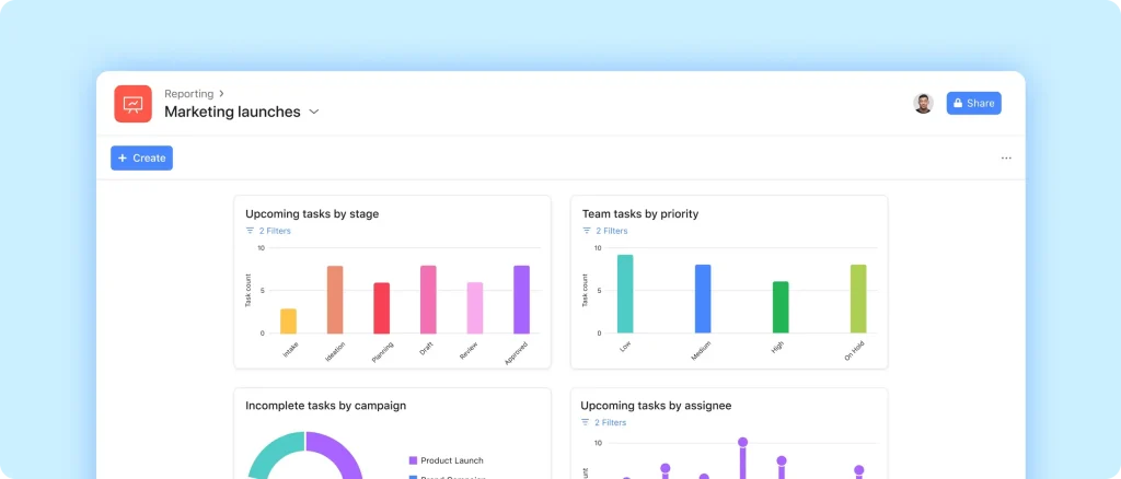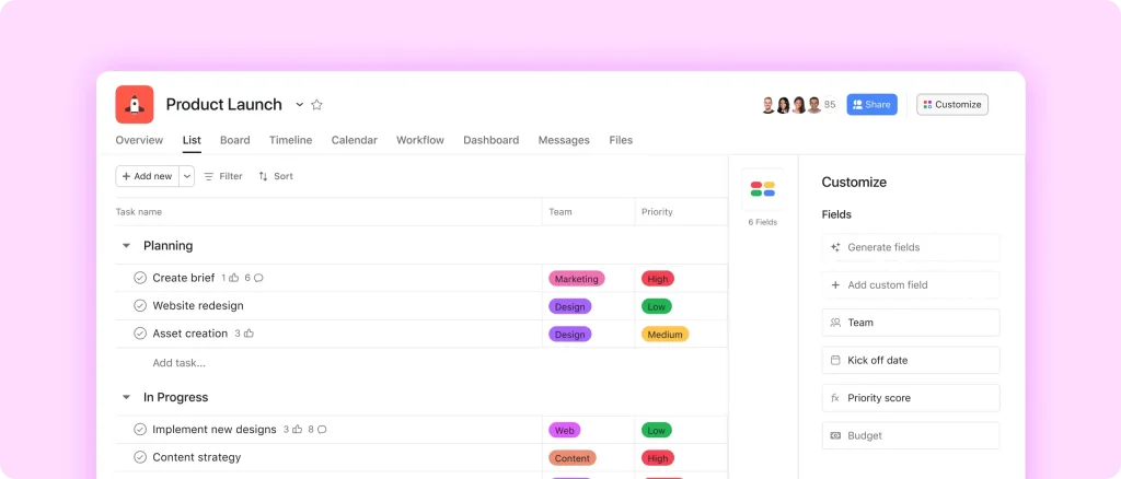สามารถสร้าง Project Template สำหรับทุก Product Launch ที่ครอบคลุมตั้งแต่การเตรียมสต็อก, ออกแบบ Visual, ประกาศผ่าน Social Media ไปจนถึงการจัดคิวหน้าร้าน ทุกทีมที่เกี่ยวข้องจะเห็น Timeline และ Owner ของแต่ละ Task ได้อย่างชัดเจน เพียงไม่กี่คลิก