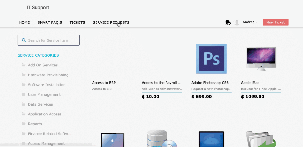 ตัวอย่างหน้า Service Catalog – Freshservice