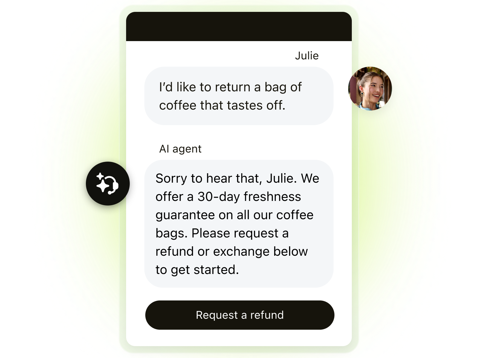 ใช้งาน AI Agents เพื่อช่วยตอบคำถามที่พบบ่อย (FAQs) โดยอัตโนมัติ, ส่งต่อเคสไปยังแผนกที่ถูกต้อง และมอบบริการดูแลลูกค้าตลอด 24 ชั่วโมง ทั้งหมดนี้เริ่มต้นได้ง่ายๆ เพียงแค่ 3 คลิก