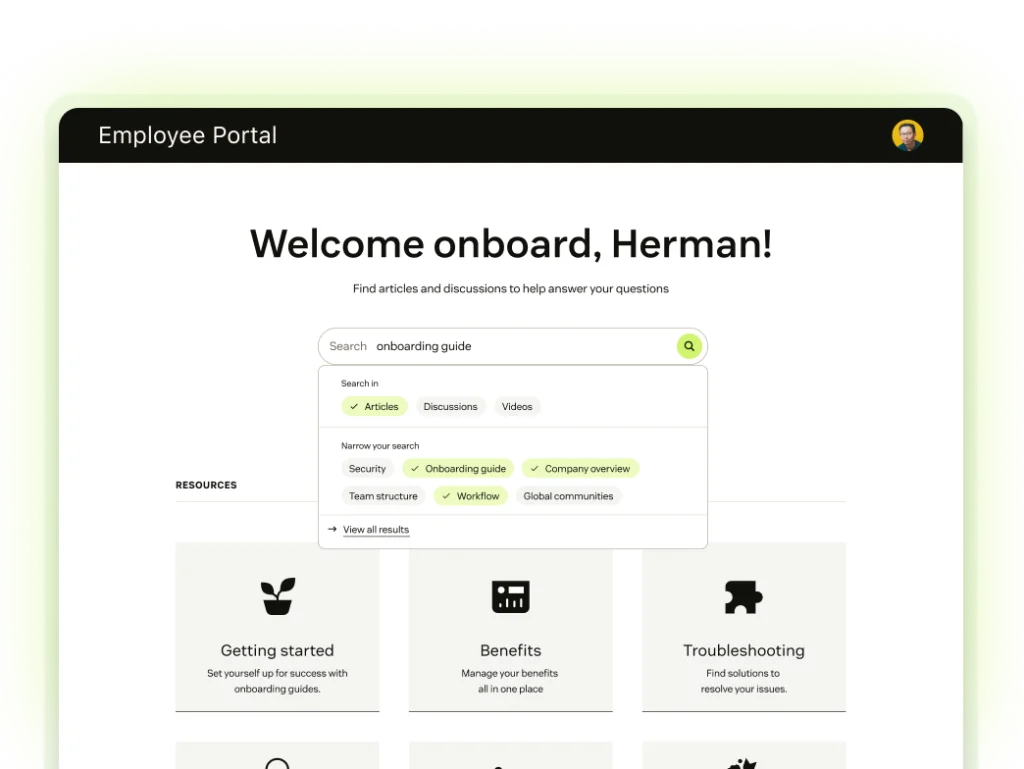 ช่วยให้ทีม HR ทำงานได้เต็มประสิทธิภาพ ตั้งค่าใช้งานได้ง่าย และมี Zendesk AI ช่วยตอบคำถามประจำวัน เพื่อให้ผู้เชี่ยวชาญของคุณมีเวลาโฟกัสกับสิ่งที่สำคัญที่สุด ซึ่งก็คือพนักงานของคุณ