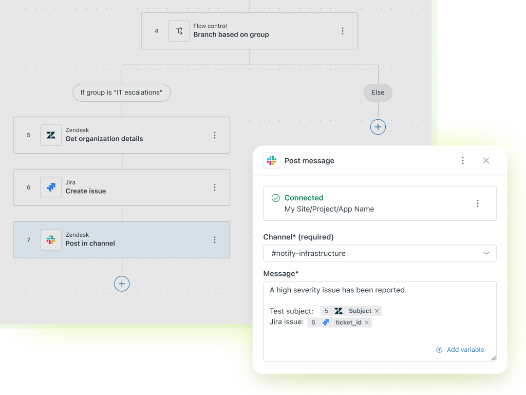 เพิ่มเครื่องมือ HR และระบบ Collaboration ของคุณเข้า Zendesk ได้ภายในไม่กี่นาที เชื่อมต่อกับ Slack, Microsoft Teams, Okta, Workday, Rippling และอื่น ๆ ได้อย่างไร้รอยต่อ