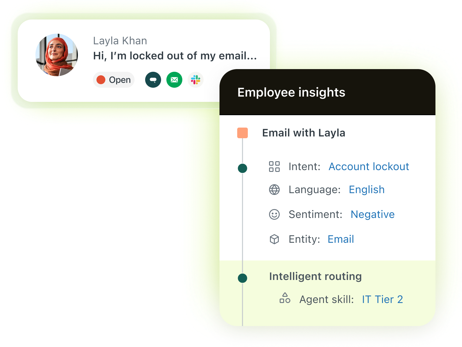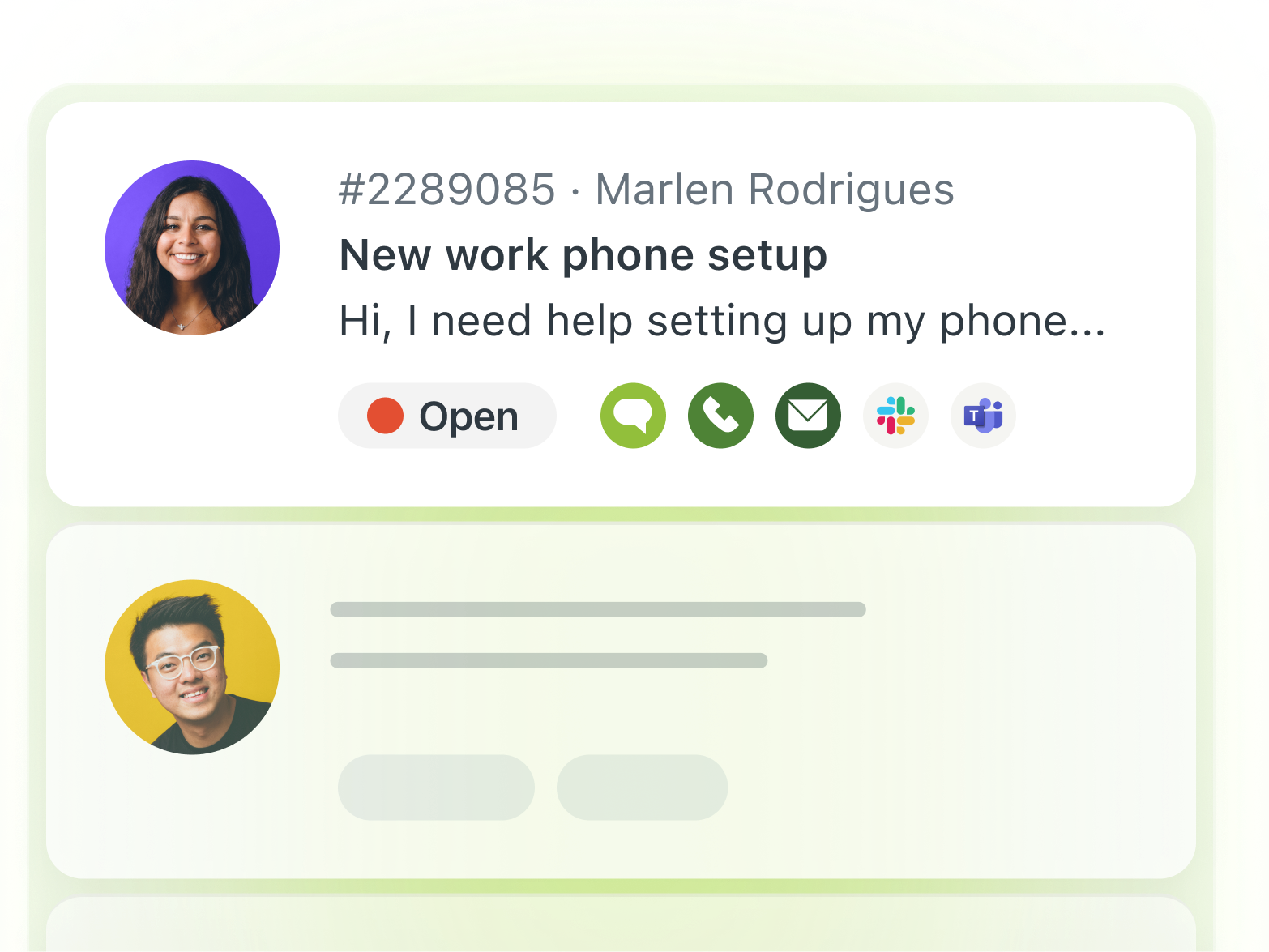 ให้การสนับสนุนที่ไม่ยุ่งยากโดยตรงภายในช่องทางที่พนักงานใช้อยู่แล้ว ไม่ว่าจะเป็นอีเมล, Slack, หรือ Microsoft Teams