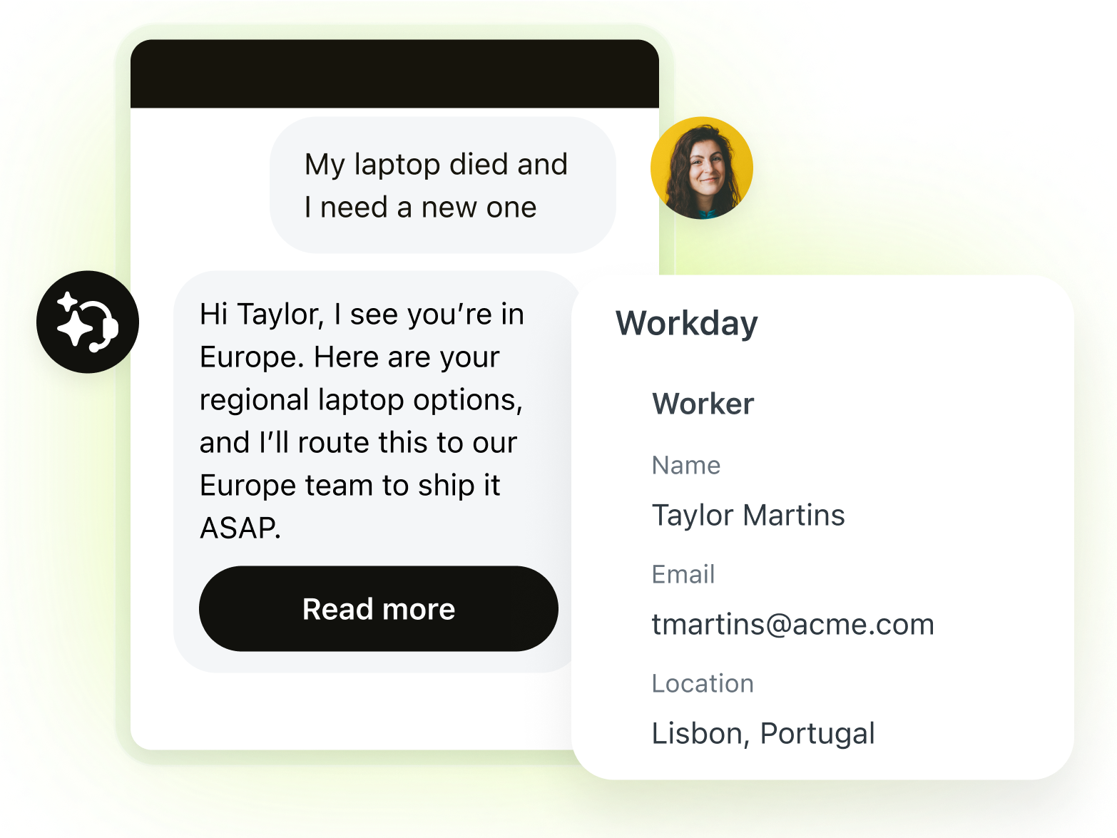 สร้างความพึงพอใจให้พนักงานด้วยบริการที่รวดเร็วและปรับตามแต่ละบุคคล เร่งการแก้ปัญหาให้ไวขึ้นด้วยพื้นที่ทำงานแบบรวมศูนย์ที่ขับเคลื่อนด้วย AI