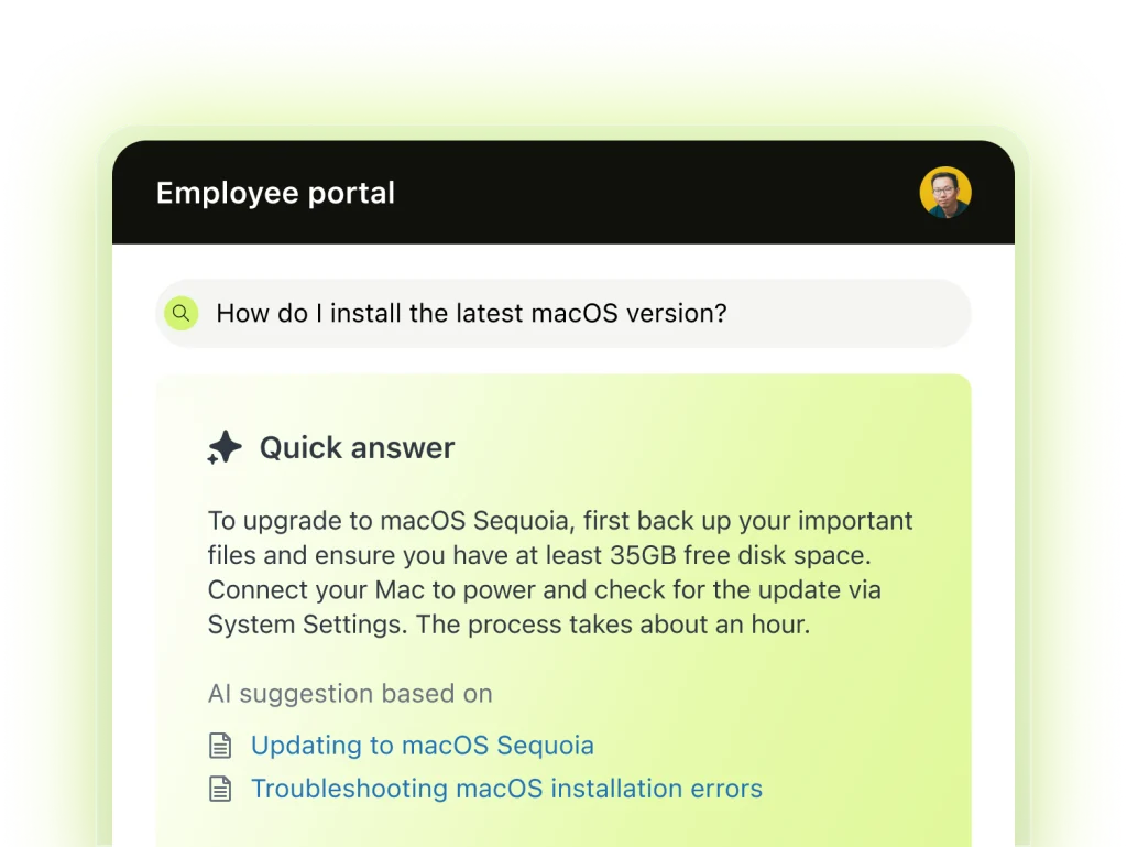 สร้างความพึงพอใจให้พนักงานด้วยบริการที่รวดเร็วและปรับตามแต่ละบุคคล เร่งการแก้ปัญหาให้ไวขึ้นด้วยพื้นที่ทำงานแบบรวมศูนย์ที่ขับเคลื่อนด้วย AI