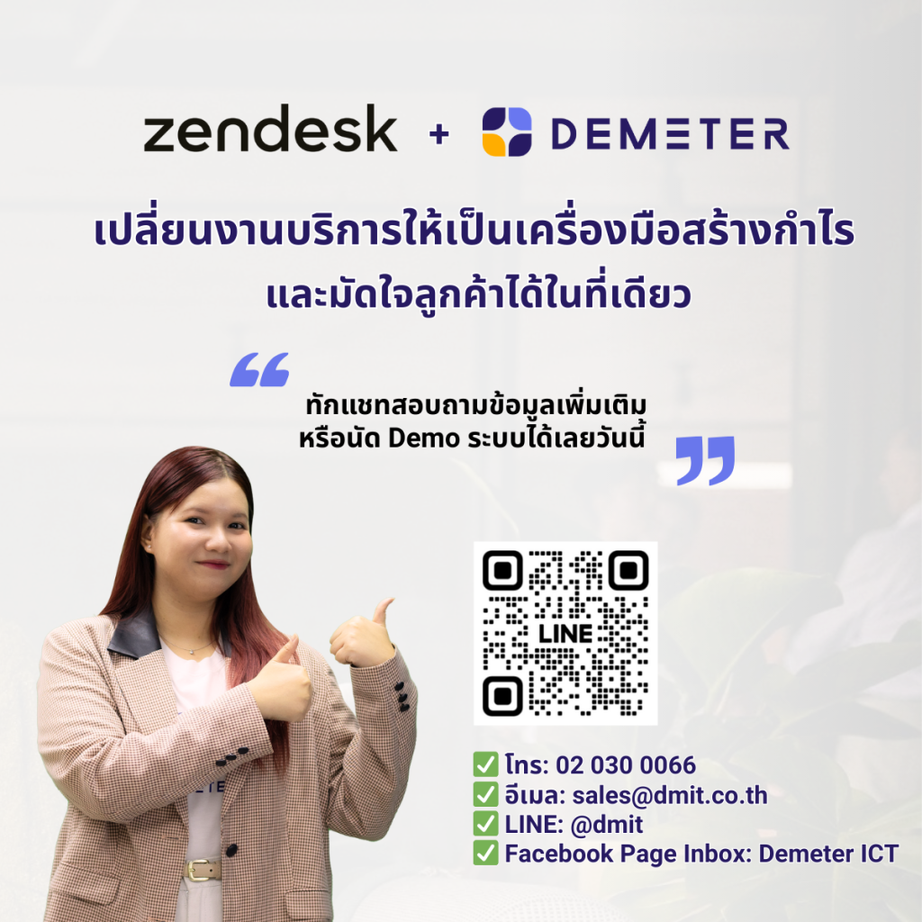 ในฐานะ Zendesk Partner ในภูมิภาคเอเชียแปซิฟิก Demeter ICT ไม่ได้เพียงแค่เข้ามาติดตั้งซอฟต์แวร์ แต่เราเป็นคู่คิดเชิงกลยุทธ์ที่พร้อมช่วยให้คุณบรรลุเป้าหมายที่ต้องการ