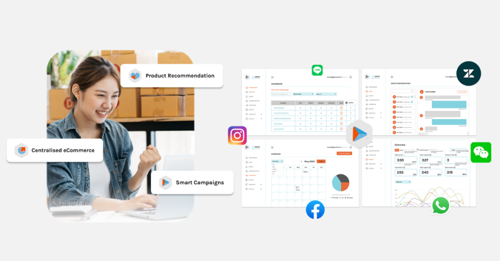 นอกจากนี้ยังมาพร้อมฟีเจอร์ที่ครบครัน ไม่ว่าจะเป็น การส่งข้อความเชิงรุกอย่างรู้ใจลูกค้า การรวมแชทจากหลายแพลตฟอร์มเพื่อตอบกลับลูกค้าในหน้าเดียว และการเพิ่มโอกาสในการขายด้วยระบบแนะนำสินค้า