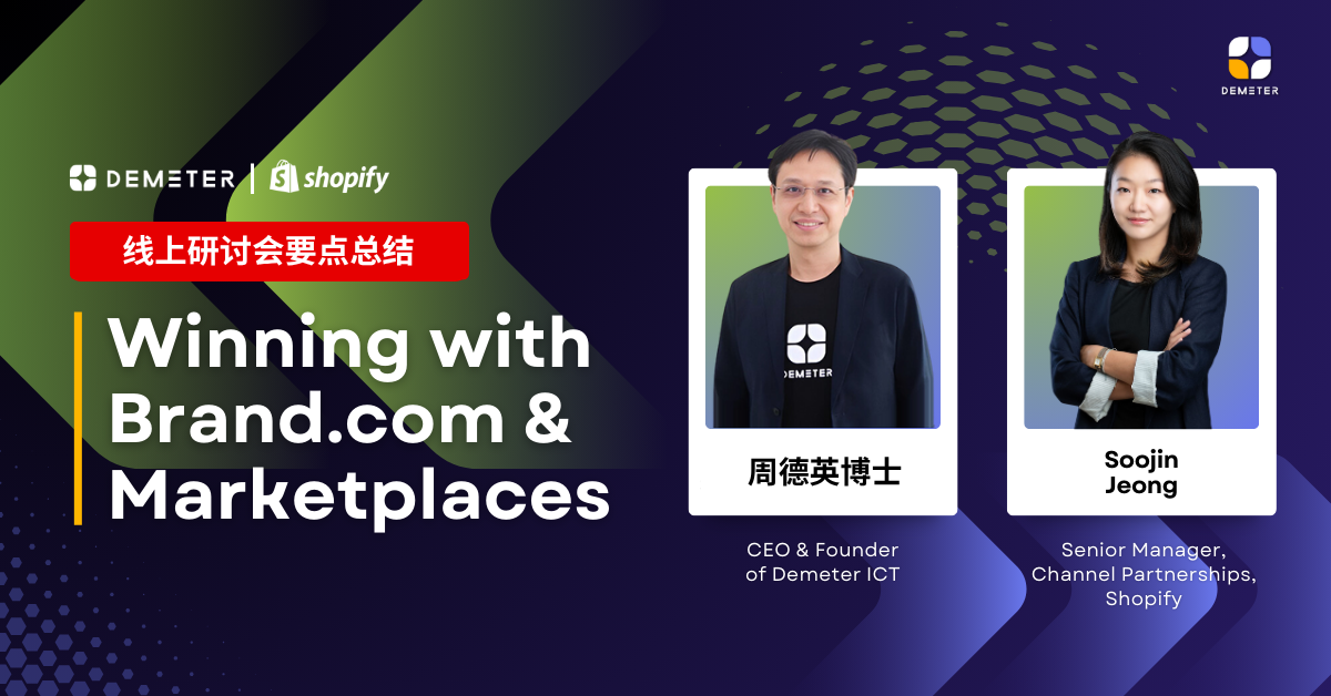 近日,DEMETER ICT 联合 Shopify 举办了一场主题为 “Winning with Brand.com & Marketplaces” 的线上研讨会,中文可译为 “以品牌官网与电商平台制胜市场”。 Shopify 是全球领先的电商网站建设平台,目前已为全球 175 个国家、超过 460 万家电商网站 提供服务,众多国际知名品牌如 CHANEL、Nike、Nestlé 等,都信赖 Shopify 作为其电子商务系统的核心技术平台。 本次线上研讨会邀请了两位主讲嘉宾: 周德英博士,DEMETER ICT 创始人兼首席执行官 Soojin Jeong,Shopify 高级合作伙伴经理(Senior Partnership Manager) 两位讲者在会上共同分享了关于品牌官网与电商平台协同发展的趋势与实战经验。 深入剖析东南亚网购消费者行为 —— 专访 周德英博士 简要说明报告的核心发现、趋势与结论。2023 年,东南亚电商市场总交易额达 1,146 亿美元。Shopee 持续稳居区域第一,Lazada 保持第二,而 TikTok Shop 以超过 200% 的年增长率迅速追赶,预计将在 2024 年成为区域第二大平台。印尼依旧是最大单一市场,占区域总额近一半。 说明数据的来源、覆盖范围及分析方式。本报告依据 Momentum Works《Ecommerce in Southeast Asia 2024》报告数据整理,结合公开财报、平台流量统计及市场访谈。分析范围涵盖六个主要市场:泰国、印尼、越南、马来西亚、新加坡及菲律宾。 Momentum Works, E-Commerce in Southeast Asia 2024 总体市场表现 东南亚电商市场概览 指标 数据 说明 东南亚电商总交易额 (GMV) US$114.6B 同比增长约 18% 主要增长动力 印尼、泰国、越南 社交电商推动增长 市场集中度 前三平台占比 80%+ Shopee、Lazada、TikTok Shop 洞察:市场竞争进一步集中化,内容电商与直播购物成为增长主力。 各国市场分析(Country Insights)🇹🇭 泰国 GMV: 193 亿美元平台份额: Shopee 49%|Lazada 30%|TikTok Shop 21%趋势分析: TikTok Shop 成为第三极力量,增长超三倍;品牌开始布局自有官网 (Brand.com)。 🇮🇩...